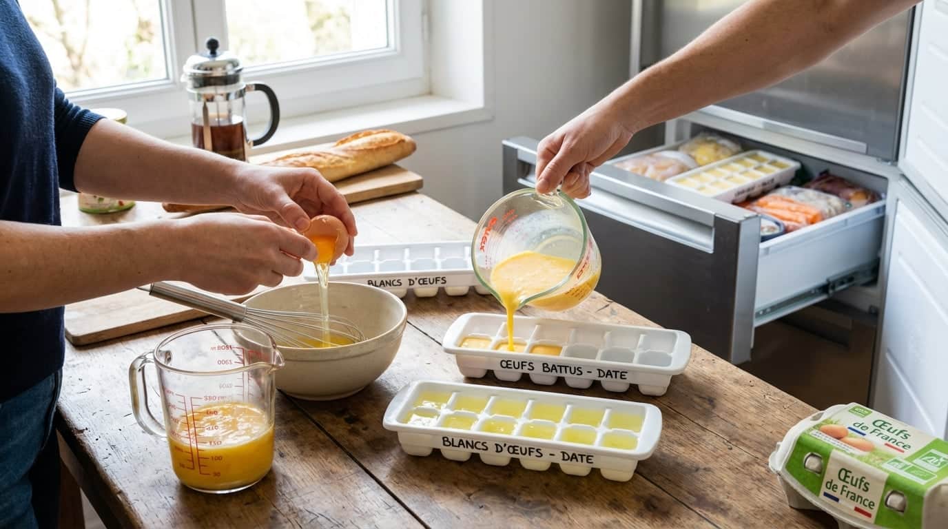 The most versatile method is also the simplest. Crack your eggs into a bowl, beat them lightly with a fork until the yolk and white are just combined, then pour the mixture into a bac à glaçons (ice cube tray) or small airtight containers. One cube typically equals one egg, which makes portioning effortless later.